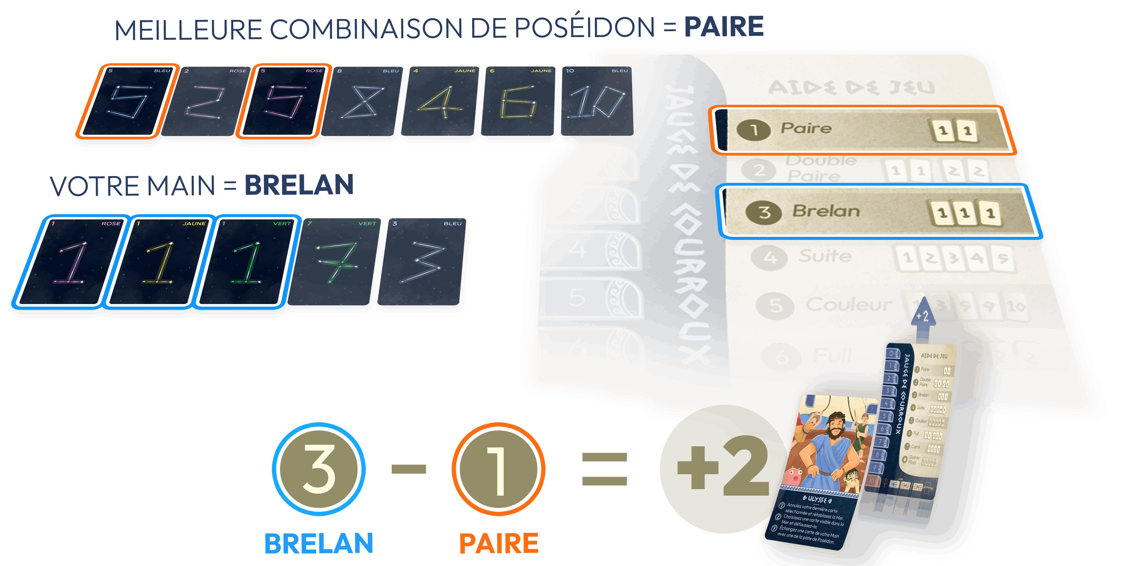 2. Phase de comparaison : comparez la valeur de votre Main avec celle de Poséidon.
