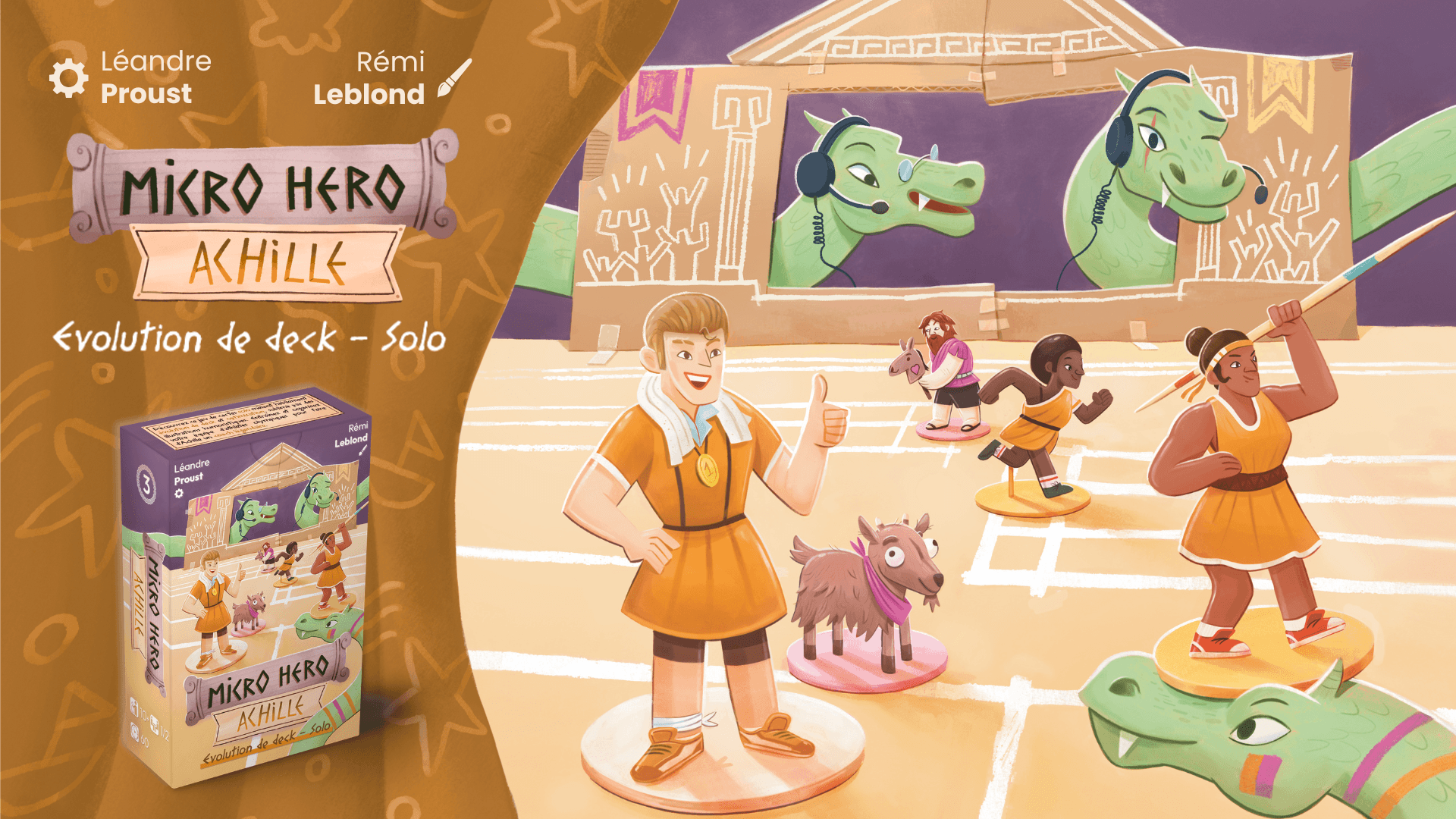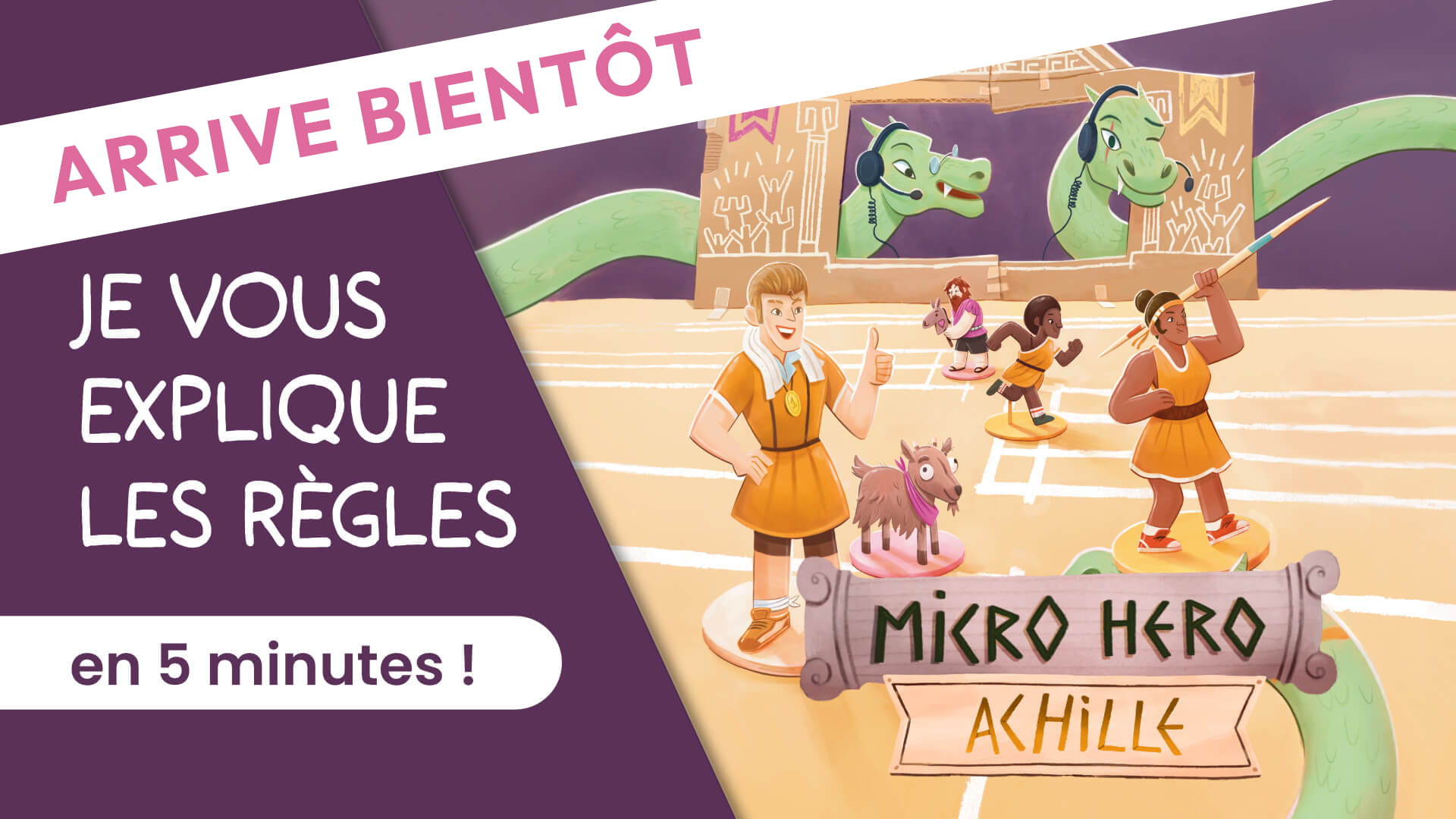 Également composé de 55 cartes, MICRO HERO Achille propose un mode compétitif à 2 joueurs, dans lequel Achille affronte Hector pour déterminer qui est le meilleur coach.