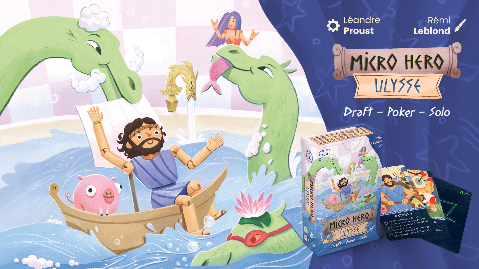 Composé de 55 cartes, MICRO HERO Ulysse propose également un mode coopératif à 2 joueurs, dans lequel Ulysse est aidé par Euryloque pour arriver à bon port.